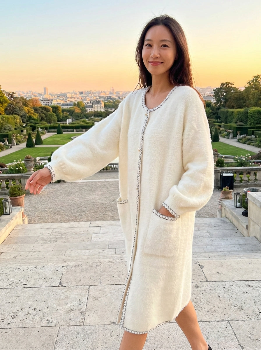 Elevate your winter wardrobe with our Pearl & Chain Trim Longline Cardigan crafted for those who want warmth without compromising elegance. Designed in a plush, soft-touch knit, this coat blends comfort and sophistication with its statement pearl-and-chain trim detailing. The relaxed open-front design makes it easy to layer over dresses, knit tops, and everyday basics, while the longline si... read more